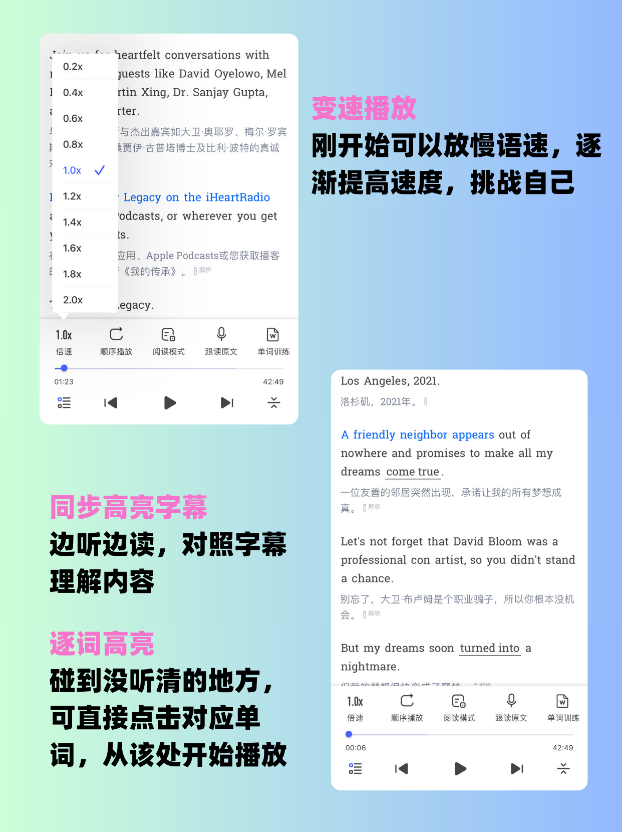 刚开始可以放慢语速,听懂后再调快,挑战自己💪